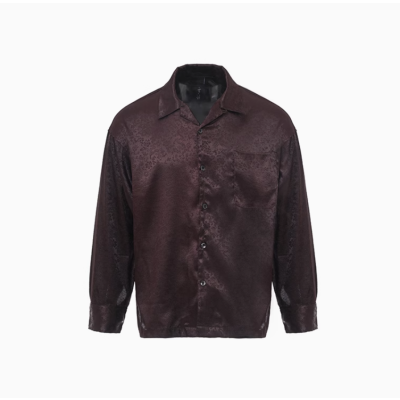 三省六部【密宗】春季新中式极简暗纹提花男士宽松古巴领长袖衬衫